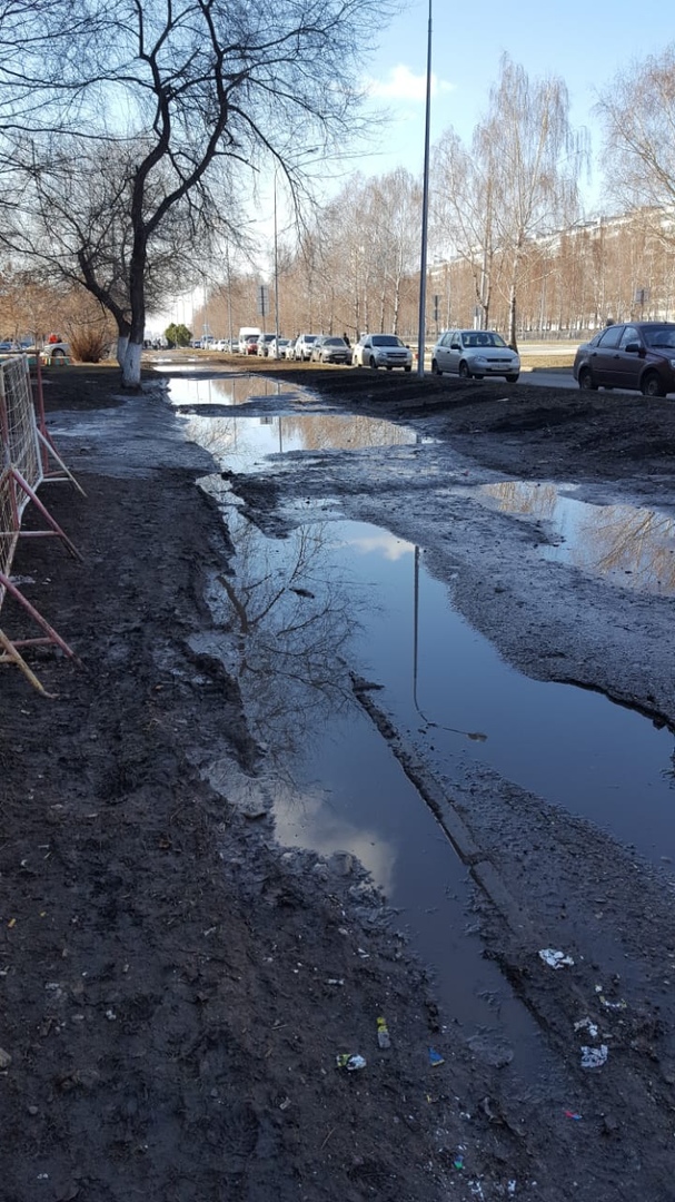 Это у нас постоянно происходит весной.. Когда копали тротуар, налаживали теплосети или что другое, совсем разрушили тротуар, он ниже всех газонов , которые находятся слева и справа, поэтому все тающие снега - на тротуаре. Добавляют грязь и автолюбители....Надо что -то с этим делать, хотя бы почистить тротуар, чтобы люди нормально передвигались по нему. На других участках Московского проспекта такого безобразия нет (прим. ред. орфография и пунктуация автора сохранены).