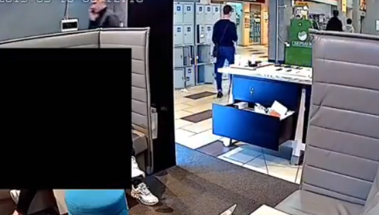 На кадрах, трое подростков подходят к прилавку и якобы рассматривают товары. Затем двое берут телефоны и уходят. В этот момент на диване за прилавком уединились парень с девушкой. Вероятно, она - продавщица магазина.