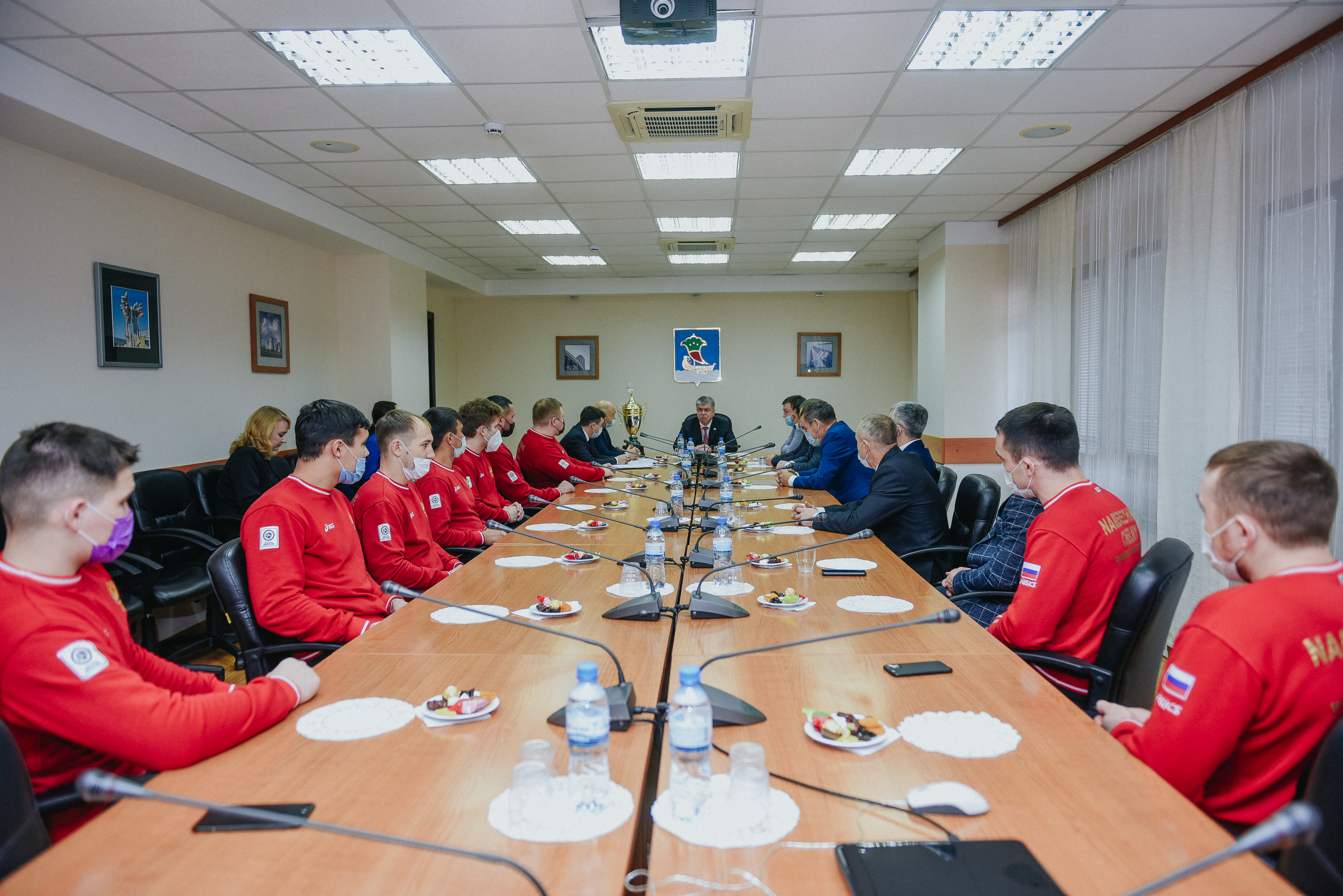 Как пишет пресс-служба автограда, мэр Наиль Магдеев встретился с командой города Набережные Челны по борьбе корэш, чтобы отметить их заслуги, вручить награды за высокие спортивные достижения.