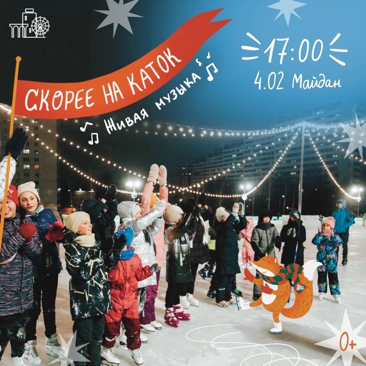 В субботу, 4 февраля, все берем коньки и идем на Майдан! Ровно в 17:00 на ледовой арене состоится концерт. Для любителей живой музыки выступят местные артисты.