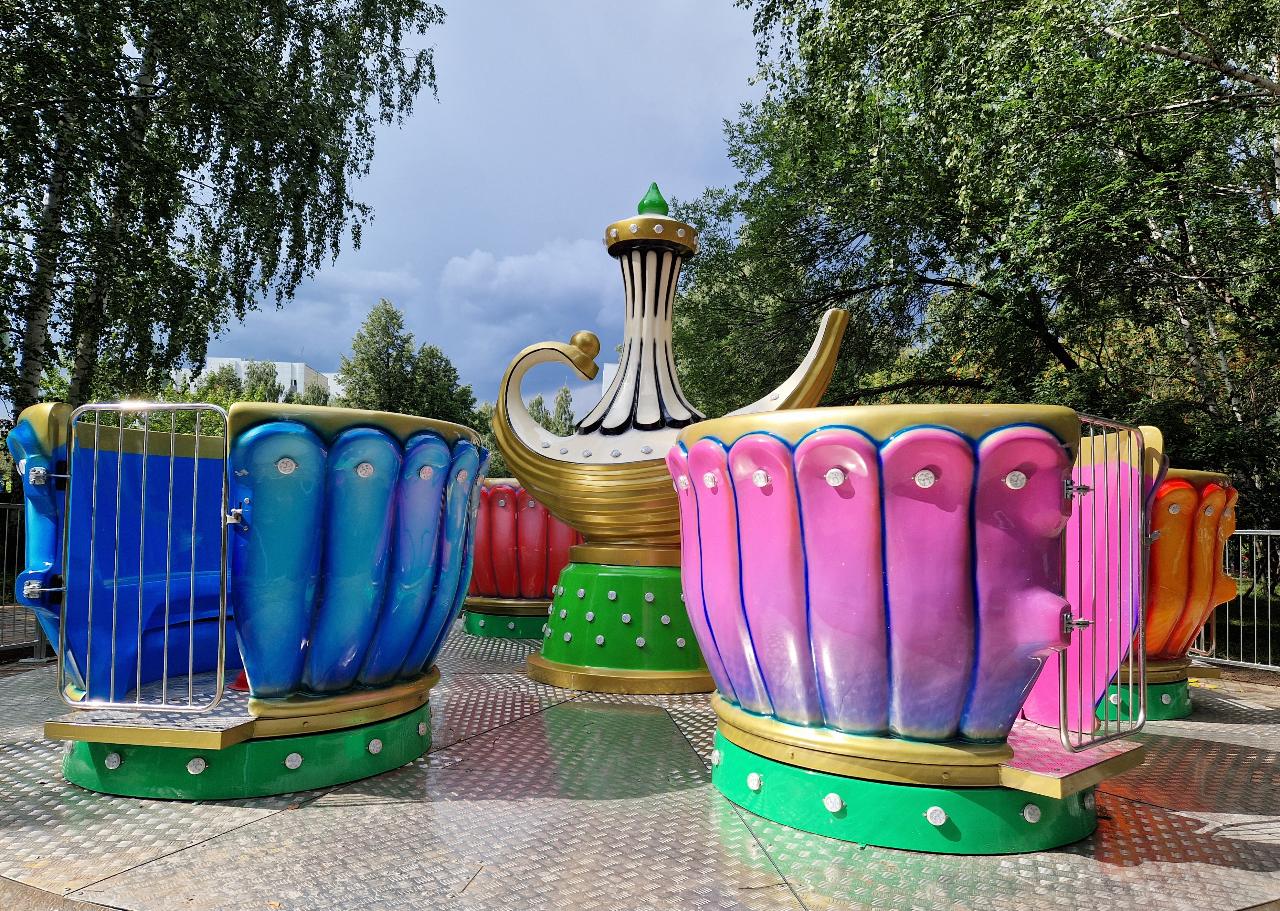 Пассажирские модули выполнены в виде чашек, диаметром 1,58 м. Места хватает на троих человек, в том числе, взрослых. Нагрузка на один модуль – 300 кг. Оценить популярность «Чайной церемонии» у посетителей удастся лишь в конце сезона, пока лидерами спроса остаются «Летучий голландец», «Веселые горки» и колесо обозрения в Парке культуры и отдыха на ГЭСе.