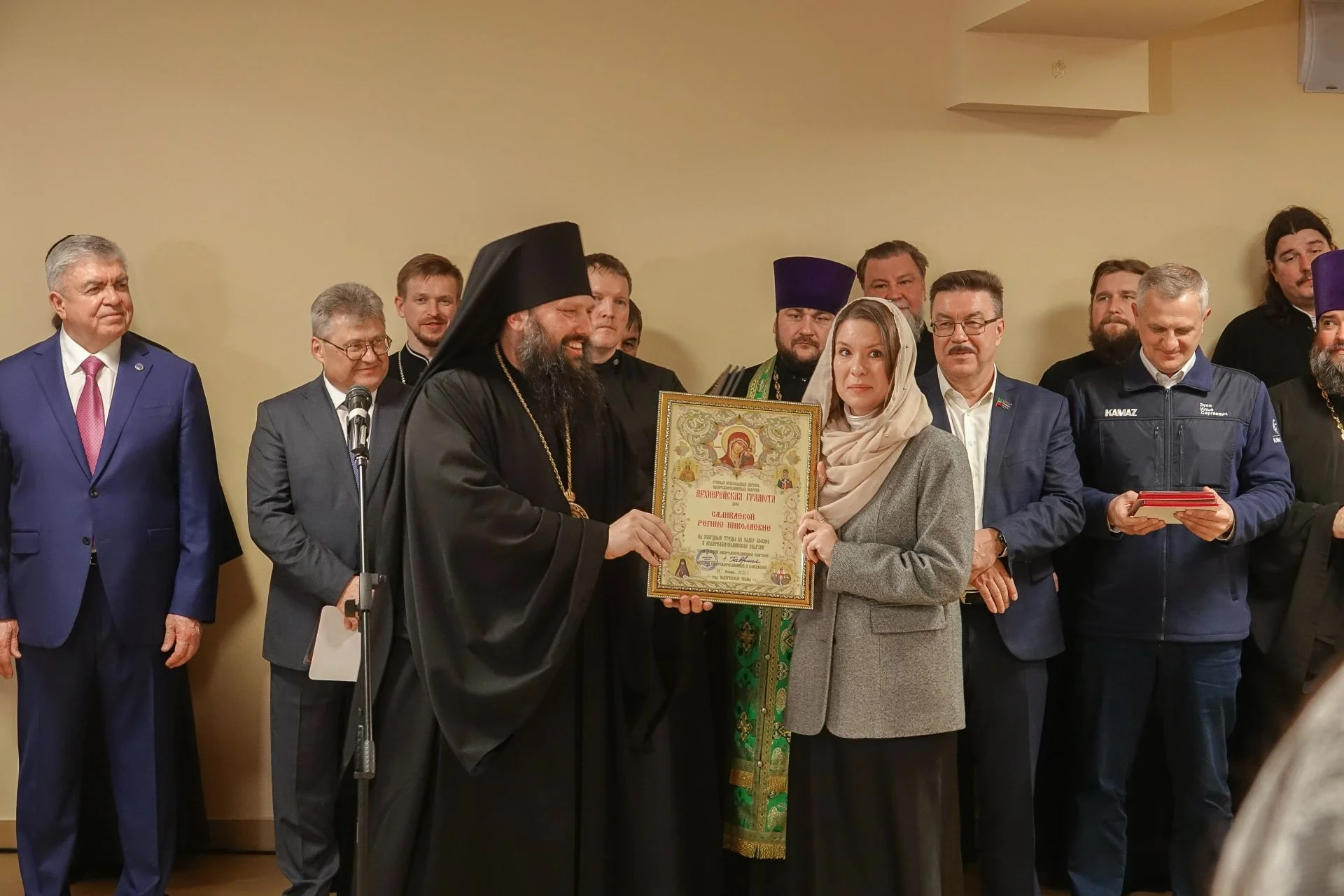 Митрополит Казанский и Татарстанский Кирилл и епископ Набережночелнинский и Елабужский Гавриил совершили Божественную литургию в честь открытия. Митрополит отметил сложный процесс строительства и выразил благодарность всем, кто помогал.