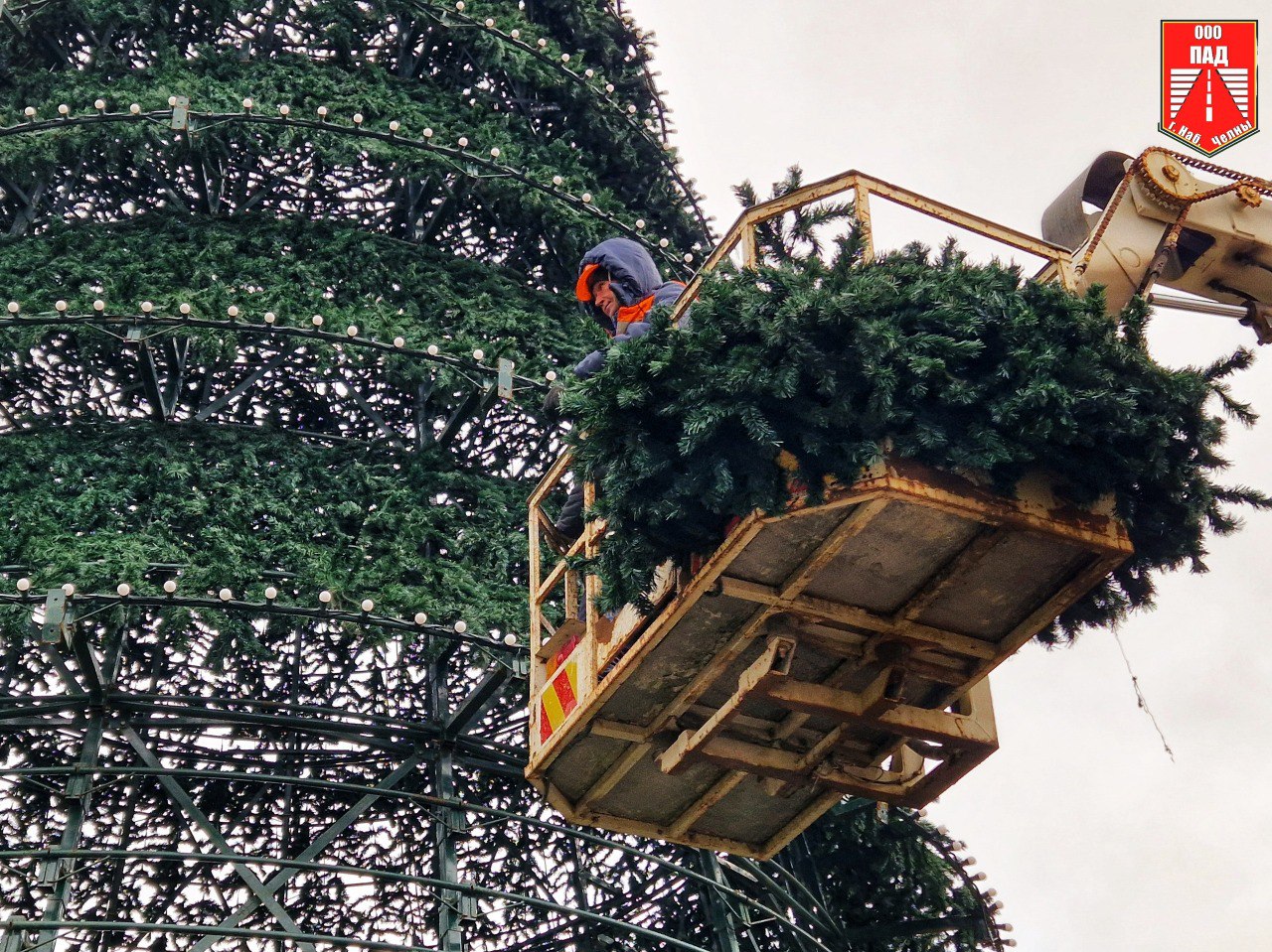 Сотрудники Предприятия автодорог рассказали, насколько сложен и опасен процесс превращения металлического каркаса в праздничную красавицу.