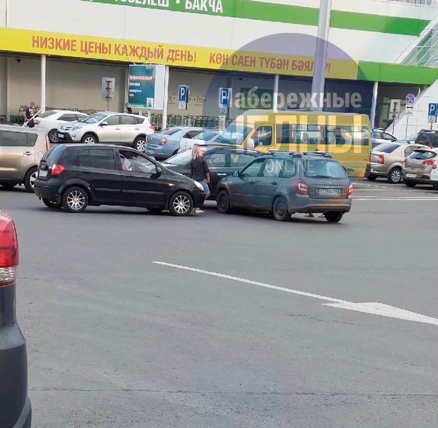 Сегодня практически на ровном месте произошло ДТП. На парковке одного из торговых центров столкнулись три машины. За рулем сидели женщины.