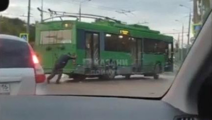 На записи неизвестный мужчина в одиночку толкает троллейбус. Мужчину пораженные горожане в соцсетях уже назвали в честь героя из комиксов «татарским Халком». Причины столь необычного поведения мужчины остаются не ясны.