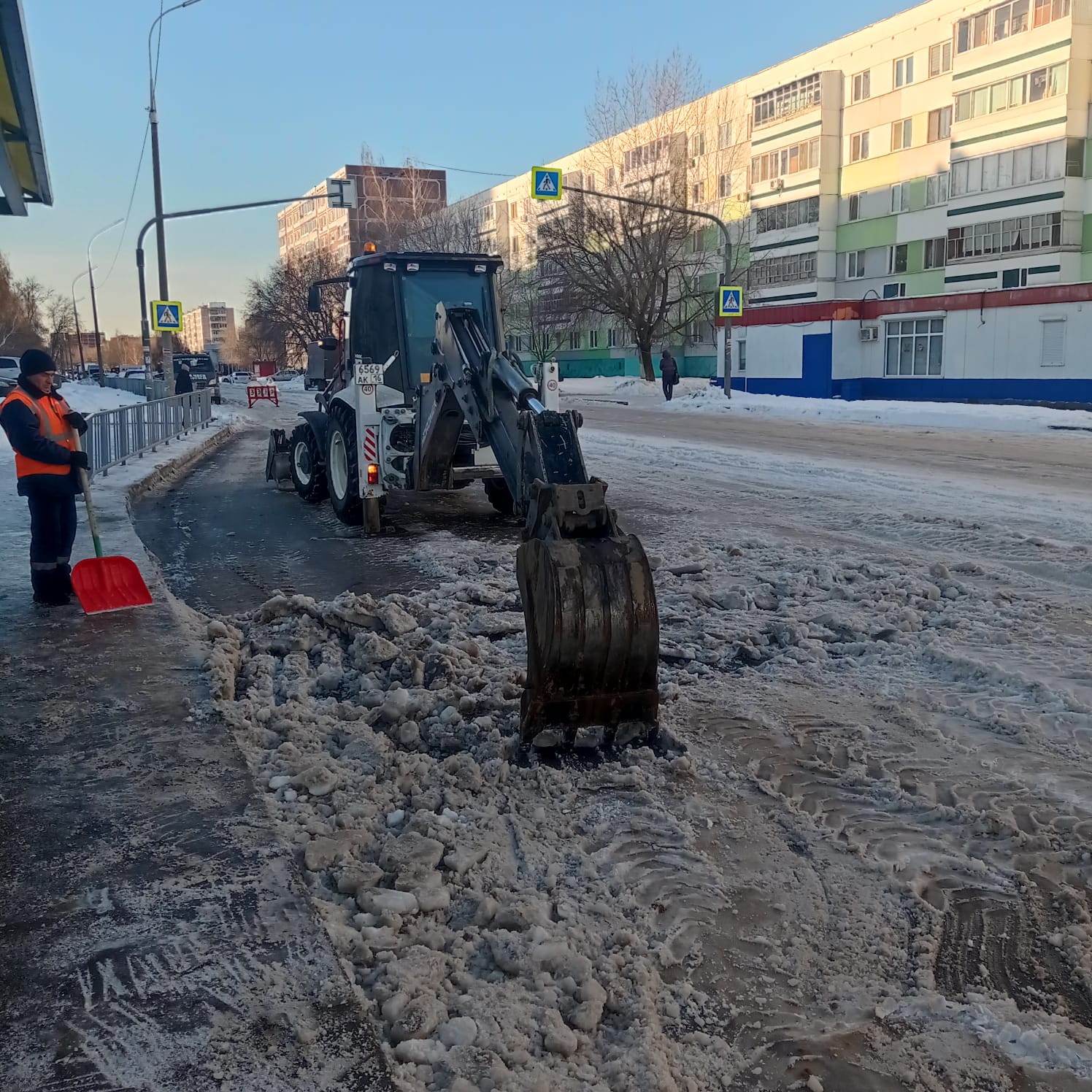 В субботу помочь дворниками вызвали школьники и студенты. Они очищали променады от снега.