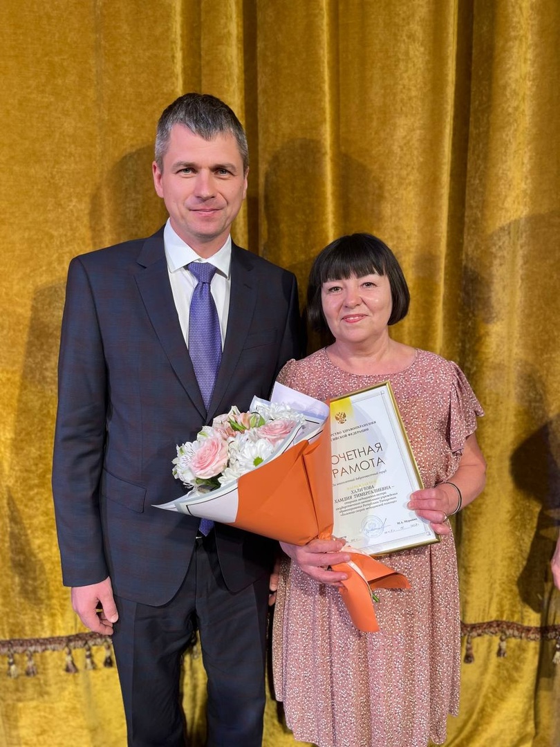 Почетную грамоту Министерства здравоохранения Российской Федерации женщине вручил в торжественной обстановке Владислав Виниченко, заместитель министра здравоохранения Татарстана. Ну что сказать?! Гордимся!