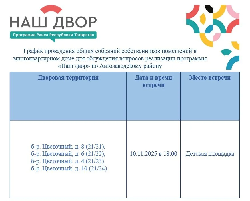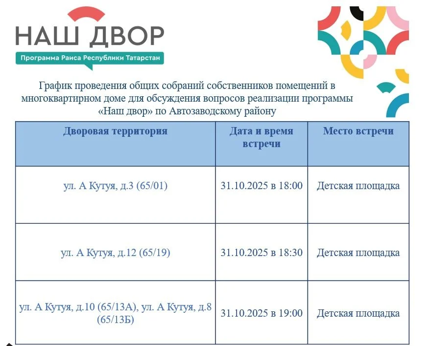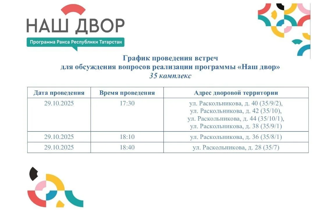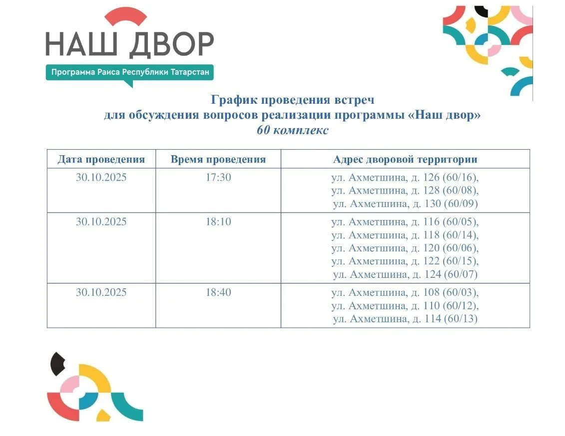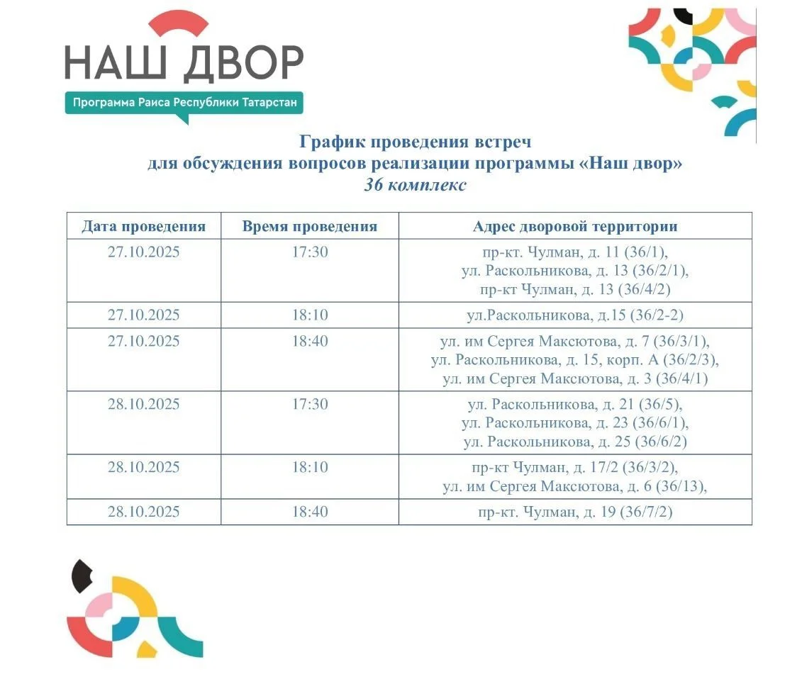 В конце октября в Набережных Челнах начнутся встречи с жителями по программе «Наш двор». Жители смогут принять участие в планировании обновления своих территорий. Приглашаются владельцы квартир в домах, включённых в план работ на 2026 год. «Челнинские известия» поделились графиком встреч.