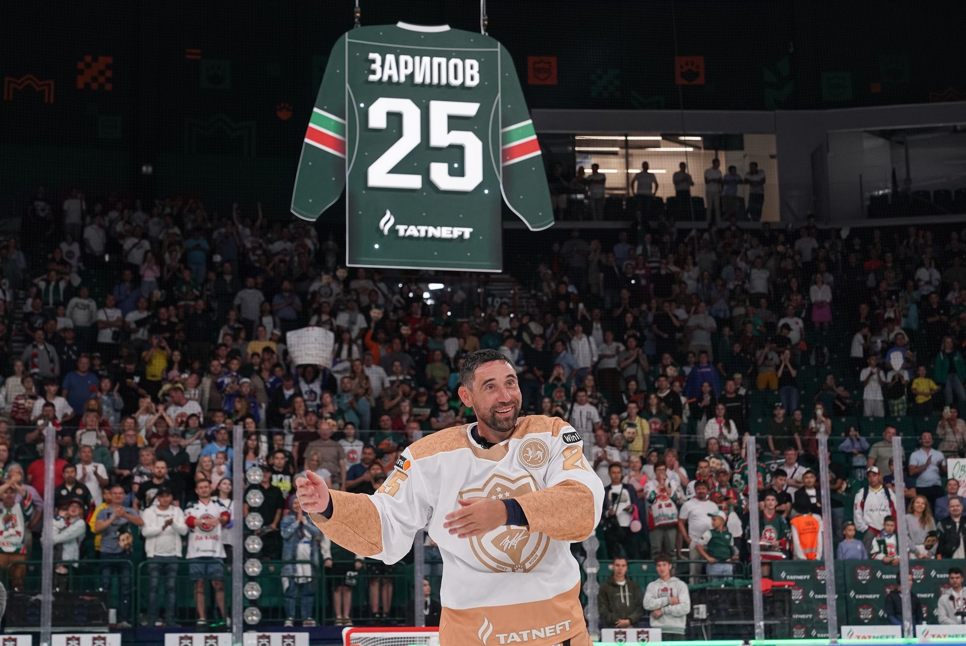 На ковровую дорожку для официальной части церемонии и благодарственных слов Данис вышел не один, его сопровождали мать, супруга и сыновья. Во время просмотра роликов и поднятия свитера под своды арены, кажется, никто не смог сдержать слез. К тому же впервые в истории «Ак Барса» номер вывели из обращения. Отныне 25 номер навсегда закреплен за Данисом Зариповым. Большой плюс организаторам мероприятия, все было на высоком уровне, как в техническом плане, так и маркетинговом. Мероприятие транслировали по федеральному ТВ, что подтверждает важность события.
