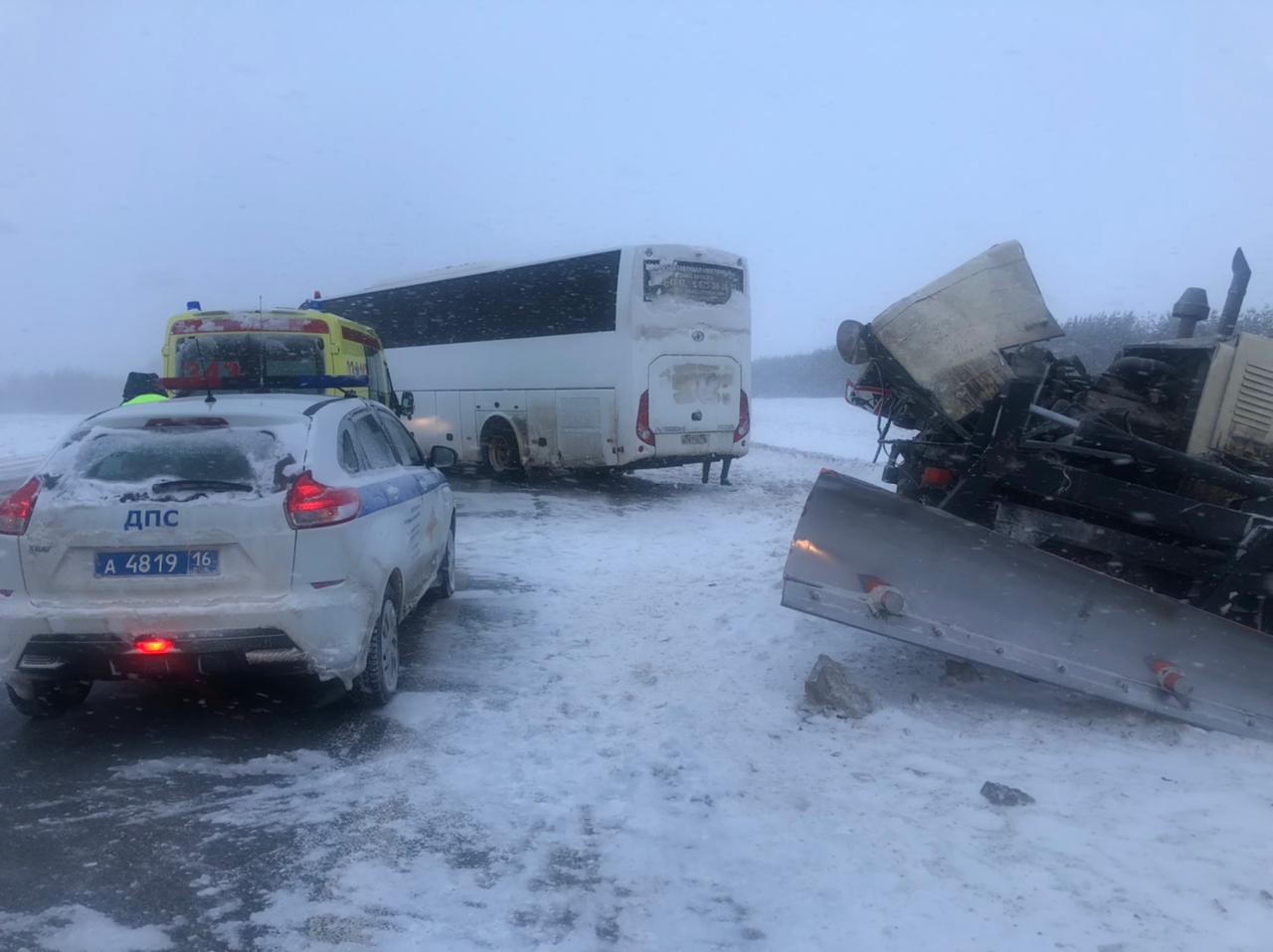 Жуткая авария: автобус из Челнов въехал в снегоуборочную технику