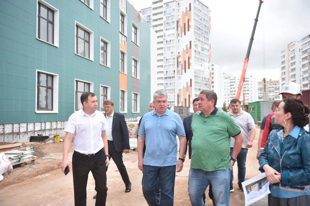 Градоначальник отметил, что возведение школы на 1224 места идет в соответствии с рабочим графиком, за что поблагодарил компанию-застройщика «Евростиль».
