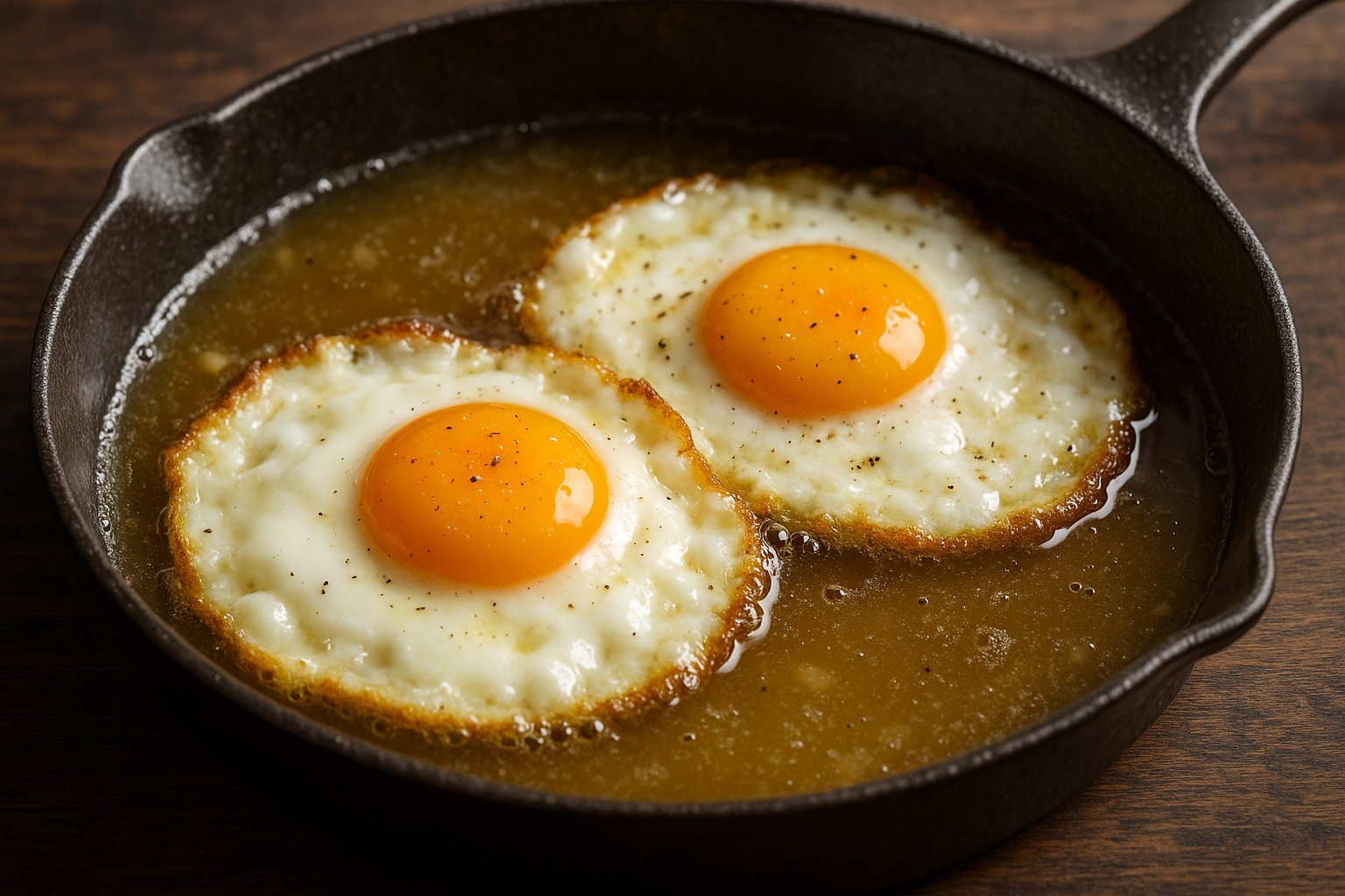 Привычка жарить яйца на масле кажется естественной — так делали наши бабушки, так привыкли и мы. Но опытные хозяйки знают: ароматная и нежная яичница вовсе не требует масла или сала. Секрет — в мясном бульоне.