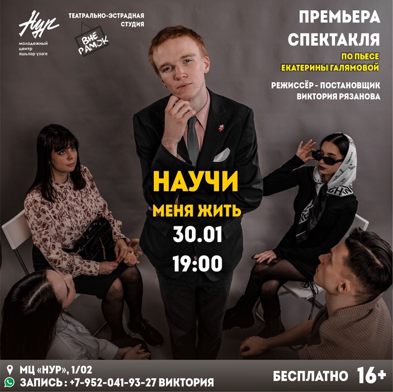 Челнинцы смогут посмотреть театральную постановку бесплатно. Такой подарок подготовил молодежный центр «Нур». Артисты театрально-эстрадной студии «Вне рамок» выступят перед зрителями 30 января. Постановка основана на пьесе «Научи меня жить», автором которой является Екатерина Галямова.