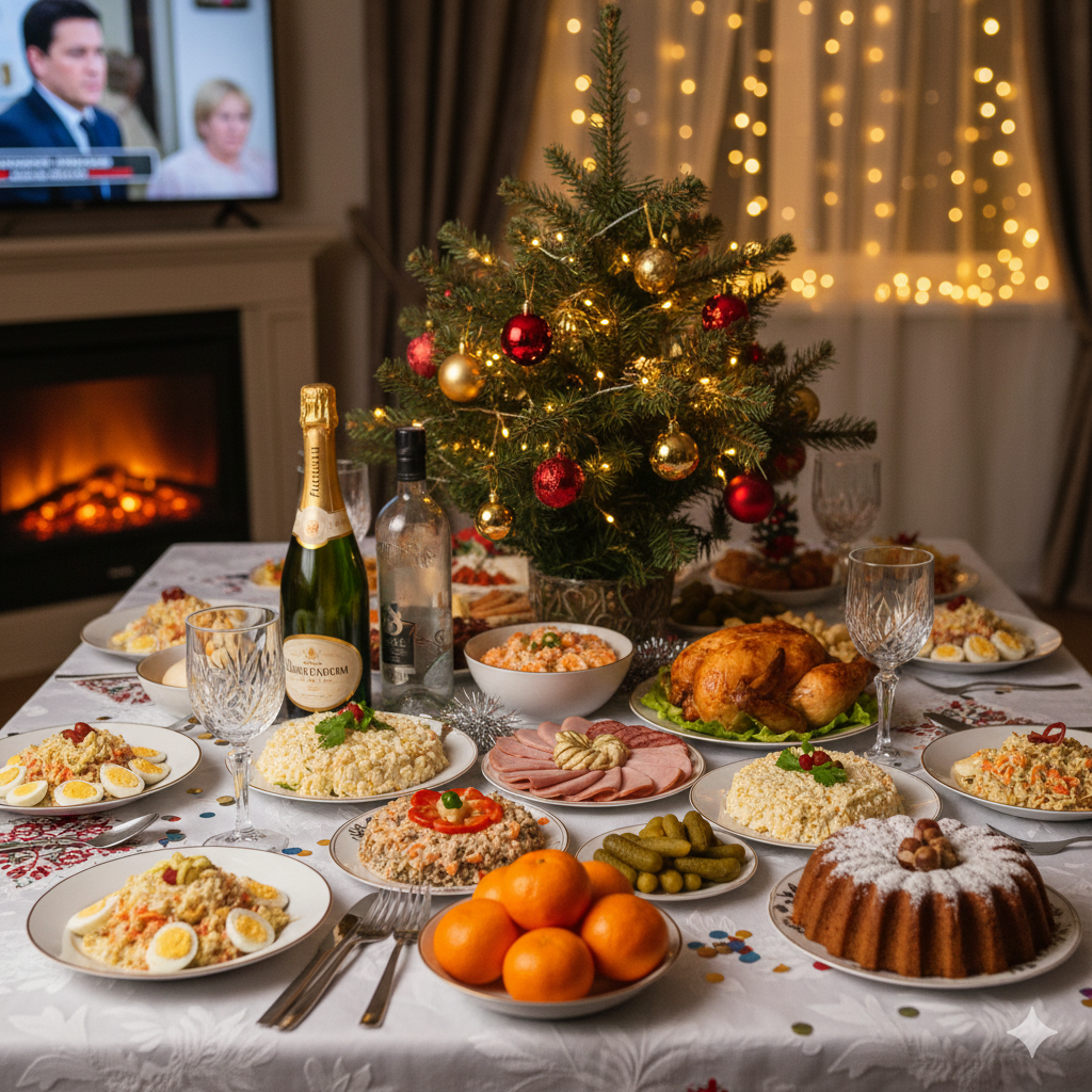 Традиция гласит: в самый разгар новогоднего застолья, среди блюд и бокалов, должно быть маленькое блюдце — не для гостей, а для хозяйки года. В него кладут три вещи:
