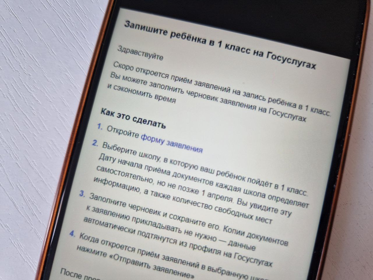 "Скоро откроется прием заявлений на запись ребенка в 1 класс. Вы можете заполнить черновик заявления на Госуслугах и сэкономить время", - такое сообщение получили татарстанцы.