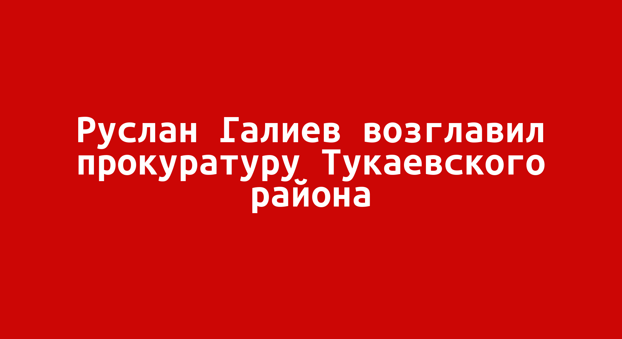 Прокуратуру Тукаевского района Татарстана возглавил Руслан Галиев, ранее занимавший должность старшего помощника прокурора РТ по взаимодействию со СМИ. На этом посту Галиев трудился с 2013 года.