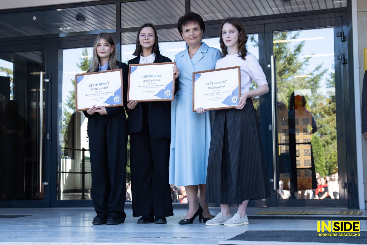 Три выпускницы школ, получившие за ЕГЭ по литературе по 100 баллов, стали студентками НГПУ. Ректор вуза Альфинур Галиакберова вручила девушкам сертификаты на 50 тыс. рублей, сообщает пресс-служба НГПУ.