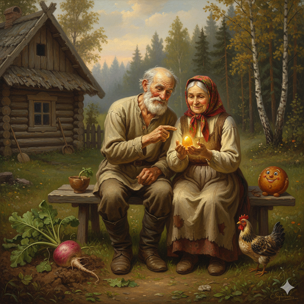 Именно поэтому чудо и приходит им — не героям, не царям, не воинам. Колобок уходит от деда с бабой, репка растёт у них, курочка Ряба несёт золотое яйцо им. Потому что сказка говорит не о силе, а о надежде: даже самые простые, самые бедные, самые «незаметные» люди достойны чуда.