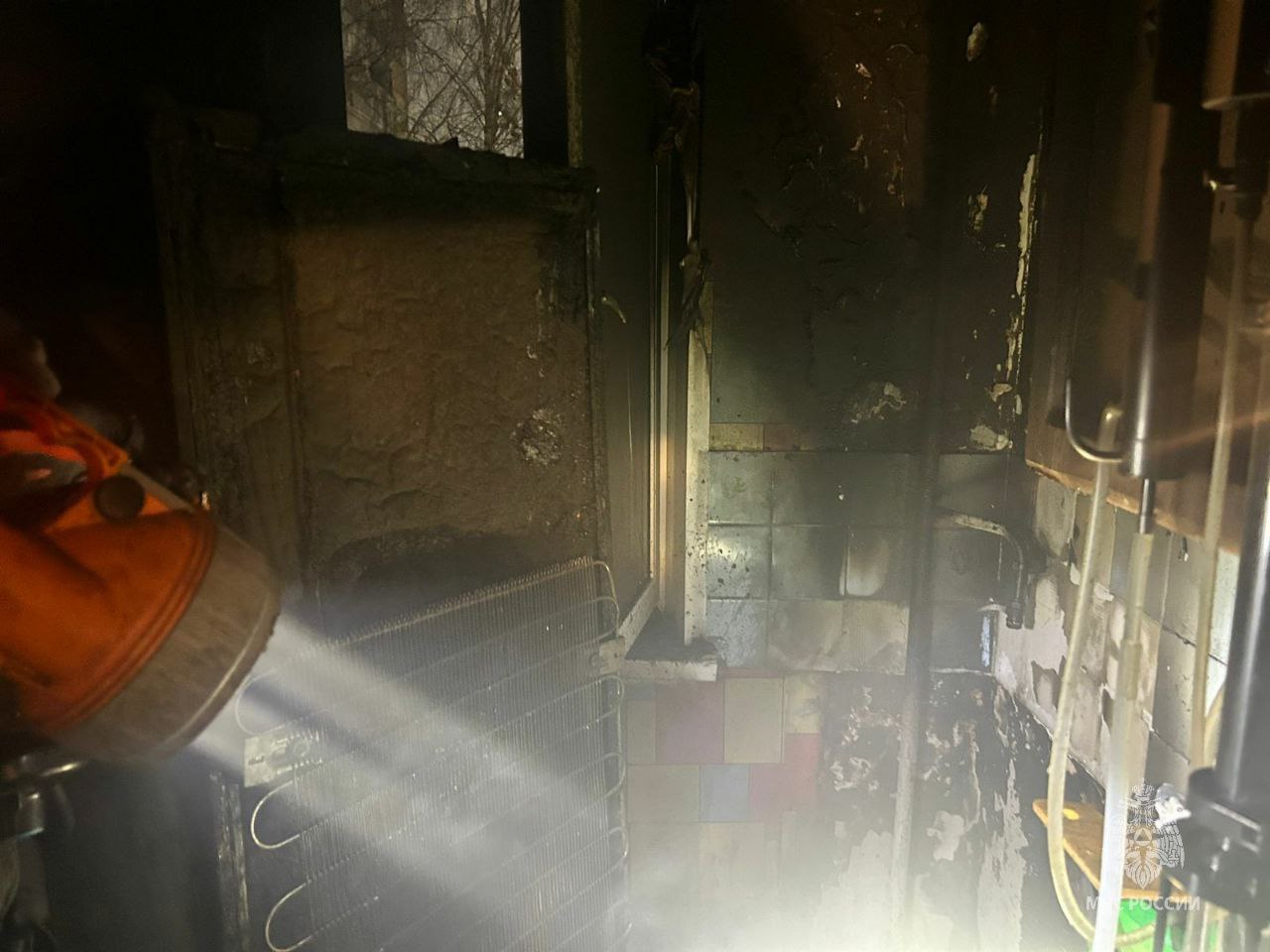 Приехавшие на вызов спасатели обнаружили горящий на кухне холодильник. Надев на жильца квартиры дыхательную маску, пожарные вывели его из квартиры и передали медикам. Позже мужчину с отравлением продуктами горения и ожогами тела госпитализировали в БСМП.