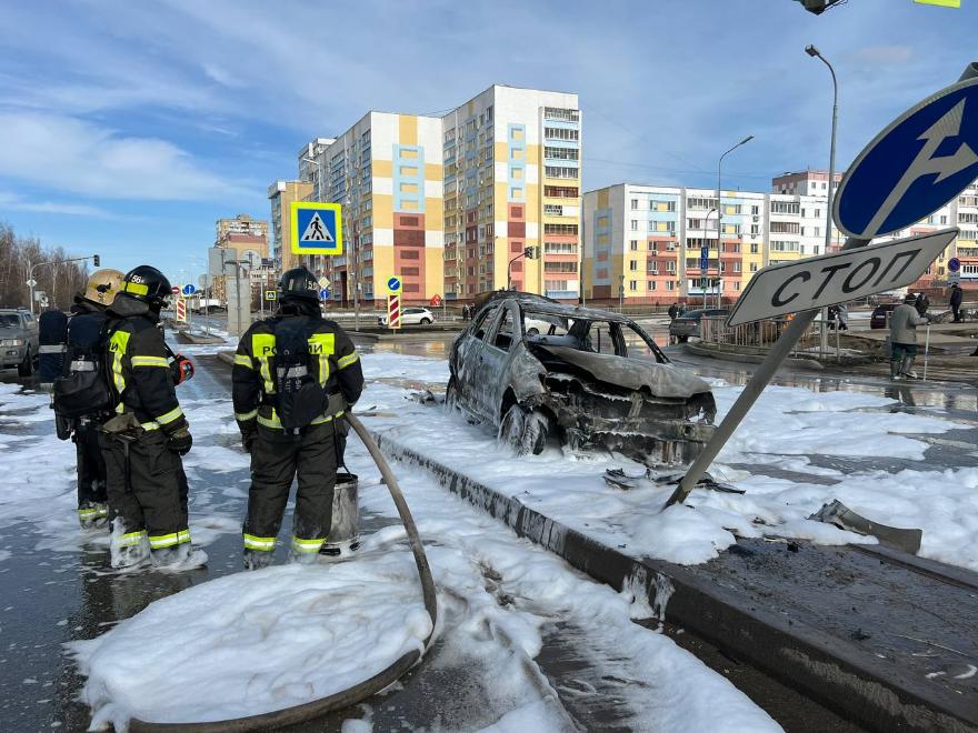 Прибывшие на место пожарные потушили огонь, но к тому моменту от машины остался только кузов – за короткое время автомобиль выгорел полностью.