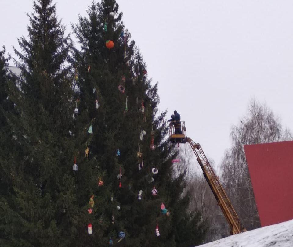 Часть растущих на общественном пространстве хвойных деревьев нарядили еще в ноябре, сегодня убранство получили и другие елки. По традиции их украсили самодельными игрушками, изготовленными детьми.