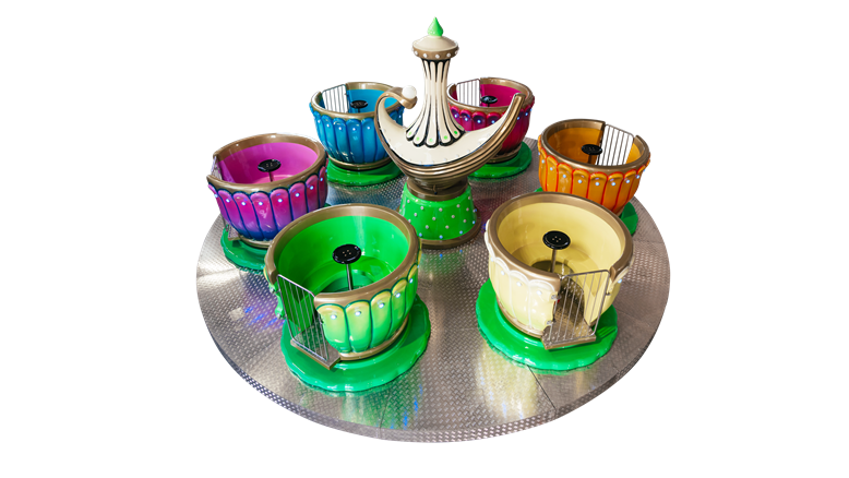 Согласно документации, вращательный аттракцион выполнен в виде чайного сервиза. Центральная часть представляет собой чайник, а пассажирские модули – чашки, вмещающие не менее трех человек каждая. Заявленная скорость вращения, прописанная в техзадании, не более 6 оборотов в минуту; нагрузка на один пассажирский модуль – не более 300 кг.