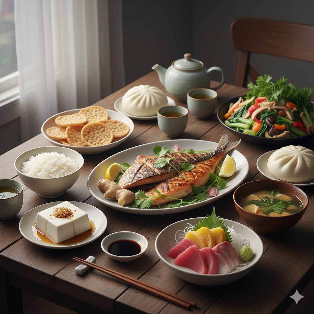 Долгожители Японии и Китая не «борются» с продуктами — они просто не начинают с них. Их рацион построен вокруг ферментированных, растительных и морских продуктов: мисо, натто, водоросли, зелёный чай, свежие овощи, бобы, рыба. Молочные и пшеничные изделия — не порок, но и не приоритет. А поскольку в этих культурах питание тесно связано с ощущением внутренней гармонии (ци), то всё, что вызывает дискомфорт — вздутие, тяжесть, упадок сил — отсеивается естественным образом.