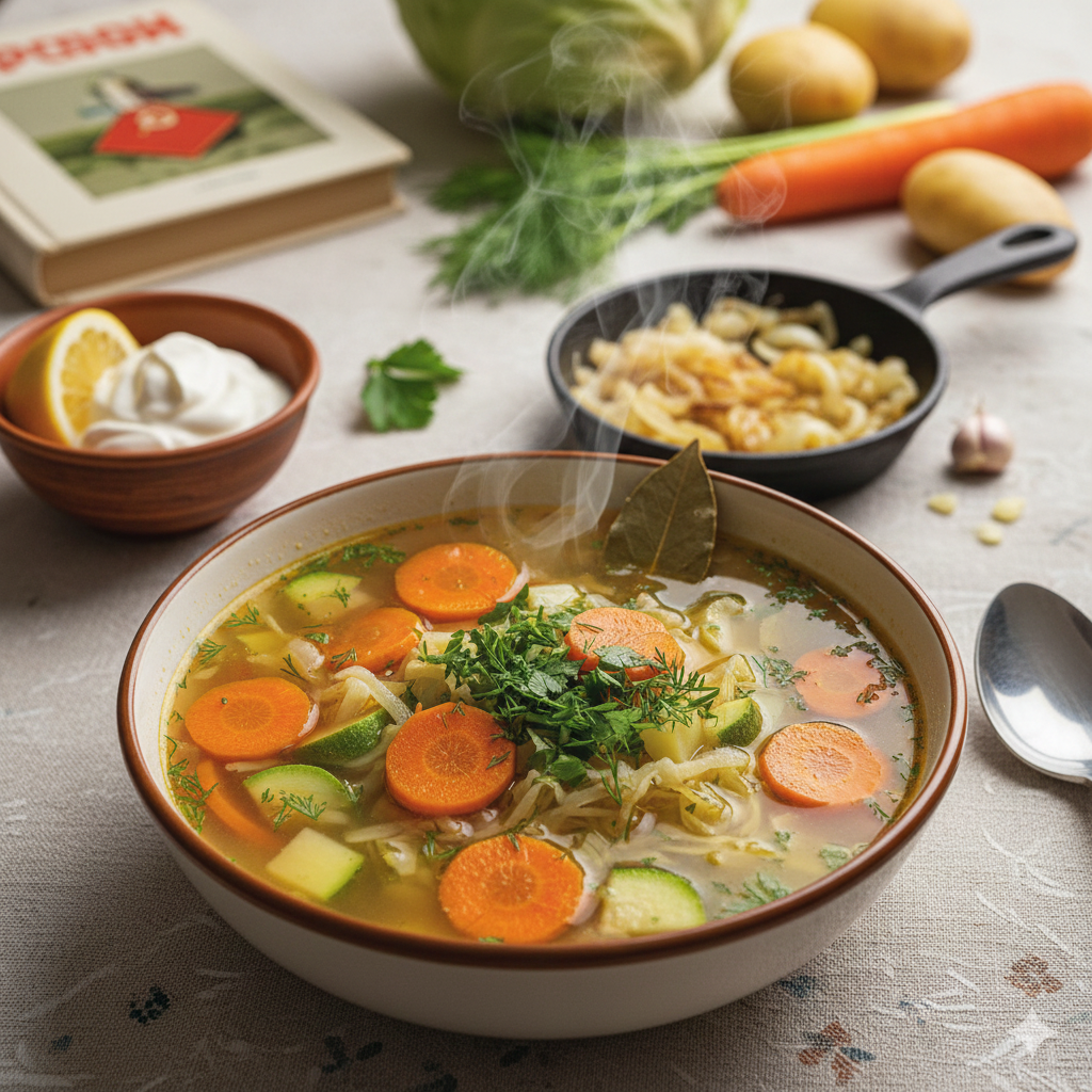 Рецепт не требует экзотических ингредиентов и сложных техник. Всё — из скромного набора сезонных овощей: морковь, картофель, кабачок и белокочанная капуста. Каждый из них играет свою роль. Морковь, нарезанная тонкими кружками, мягко стимулирует выработку пищеварительных ферментов. Картофель смягчает общую структуру блюда, придавая бульону лёгкую кремовость без жира. Кабачок — диетический овощ с высоким содержанием воды и клетчатки — способствует естественному выведению токсинов. А капуста, нашинкованная тонкой соломкой, добавляет объёма и витаминов, не перегружая при этом ЖКТ.
