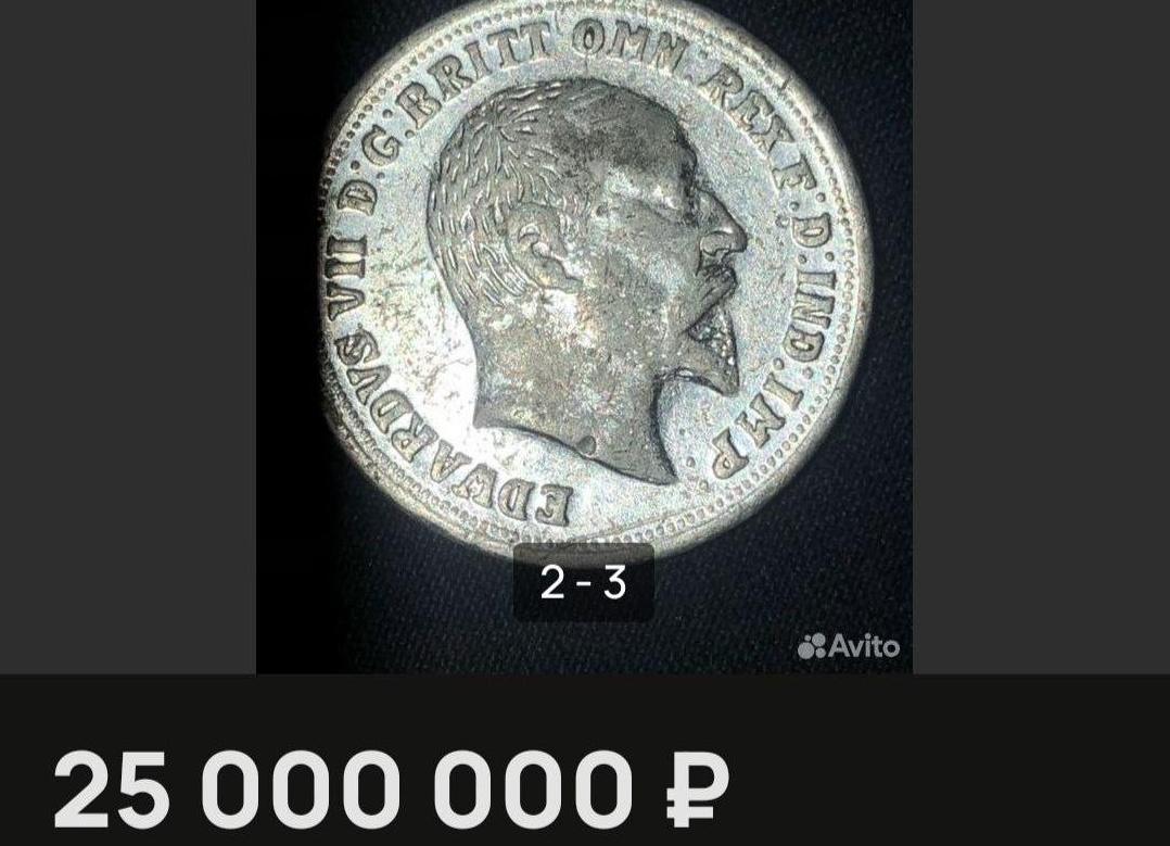Примечательно, что на монете указан 1900 год выпуска, в том время как король Эдуард VII вступил на престол в 1901-м, а коронован – в 1902 году. За аналогичную монету, датированную 1902 годом выпуска, на британском Ebay нумизматы просят от 200 до 400 фунтов стерлингов.