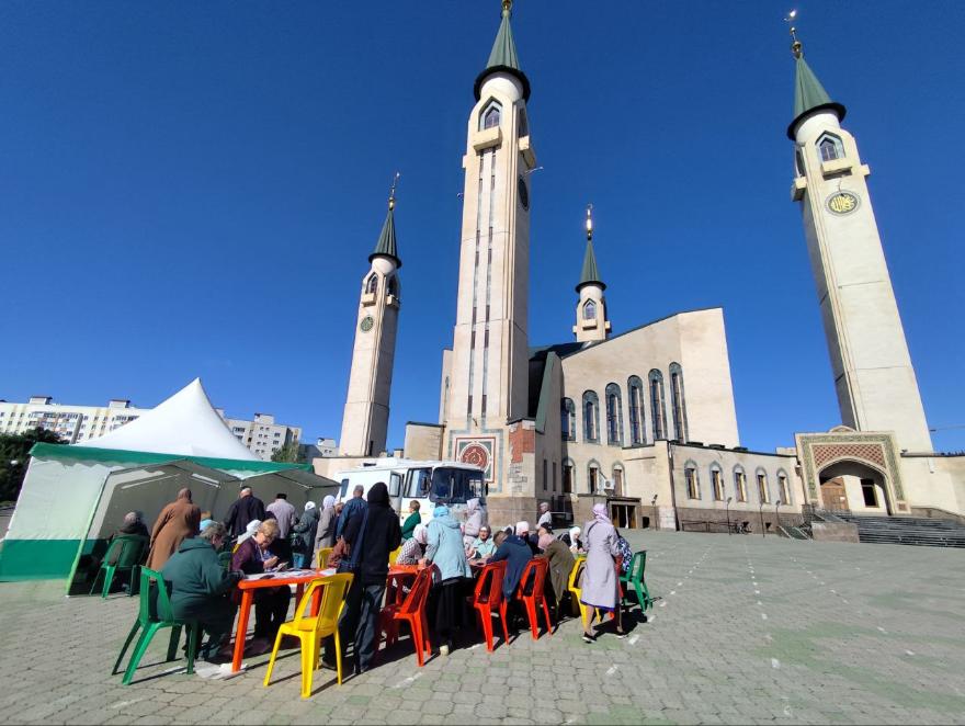 В дни работы медиков на территории мечети устанавливают палатки для мужчин и женщин, а также флюмамм – мобильный комплекс для флюорографии и маммографии. После обследования пациентам предлагают горячий чай с чак-чаком.